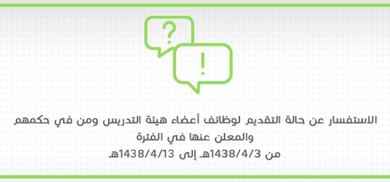 الاستفسار عن حالة التقديم لوظائف أعضاء هيئة التدريس ومن في حكمهم والمعلن عنها في الفترة