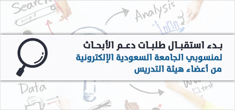 يسر عمادة البحث العلمي أن تعلن لمنسوبي الجامعة السعودية الإلكترونية من أعضاء هيئة التدريس عن بدء استقبال طلبات دعم الأبحاث