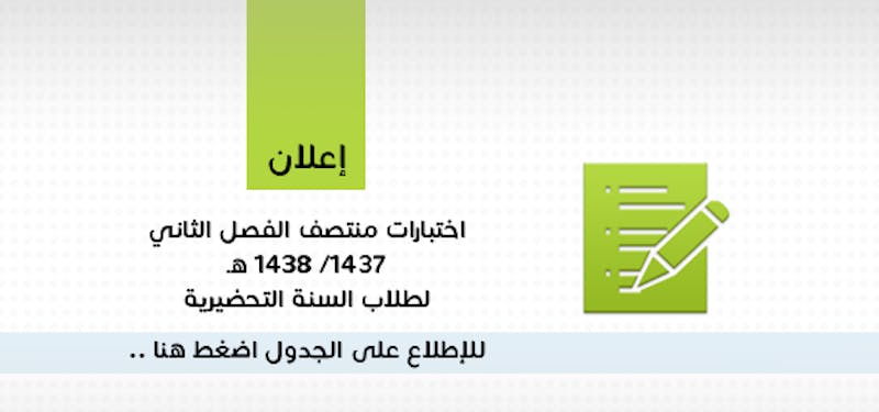 يسر عمادة السنة التحضيرية أن تعلن لطلبتها عن مواعد اختبارات منتصف الفصل الدراسي الثاني