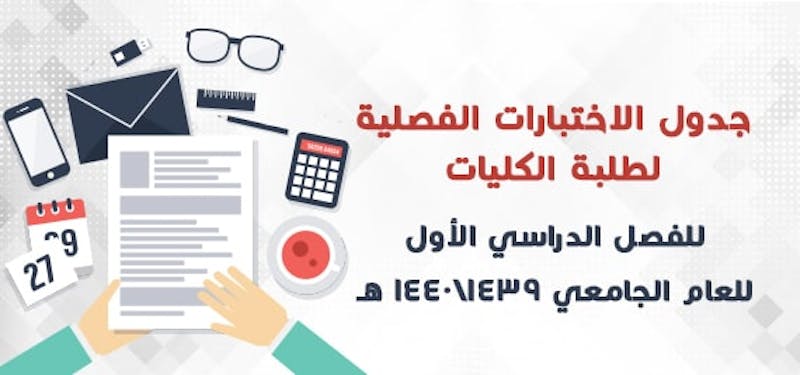 تعلن وكالة الجامعة للشؤون التعليمية عن جدول الاختبارات الفصلية لطلبة الكليات للفصل الدراسي الأول للعام الجامعي 1439\1440 هـ