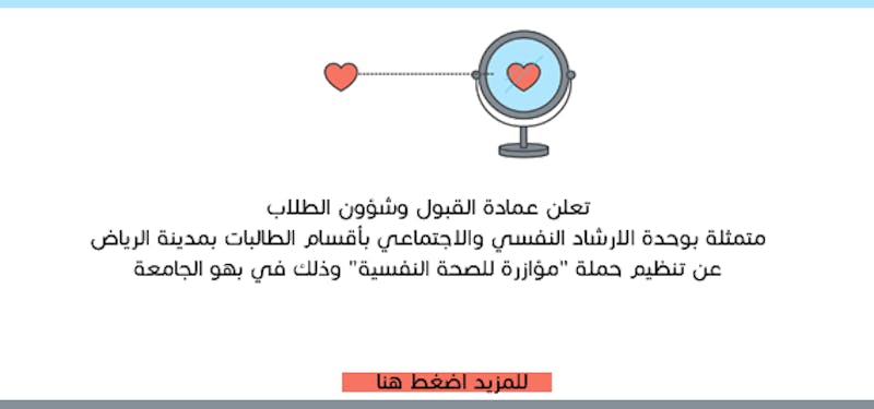 ضمن برنامج "لنحدث التغيير" تنظم وحدة الارشاد النفسي والاجتماعي حملة "مؤازرة للصحة النفسية" بالتعاون مع جامعة الملك سعود للعلوم الصحية بالحرس الوطني