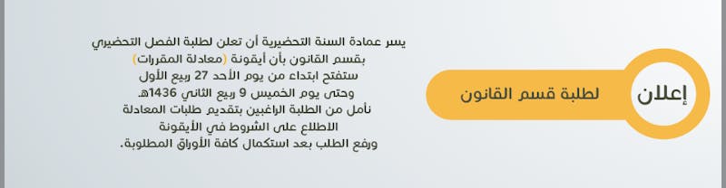 يسر عمادة السنة التحضيرية أن تعلن لطلبة الفصل التحضيري بقسم القانون