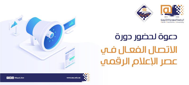 يسر معهد البحوث والدراسات بالجامعة السعودية الإلكترونية دعوتكم للتسجيل في دورة: الاتصال الفعال في عصر الإعلام الرقمي.