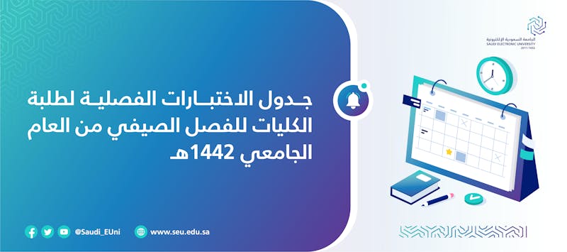 تعلن وكالة الجامعة للشؤون التعليمية عن جدول الاختبارات النهائية لطلبة الكليات للفصل الدراسي الصيفي للعام الجامعي 1442هـ