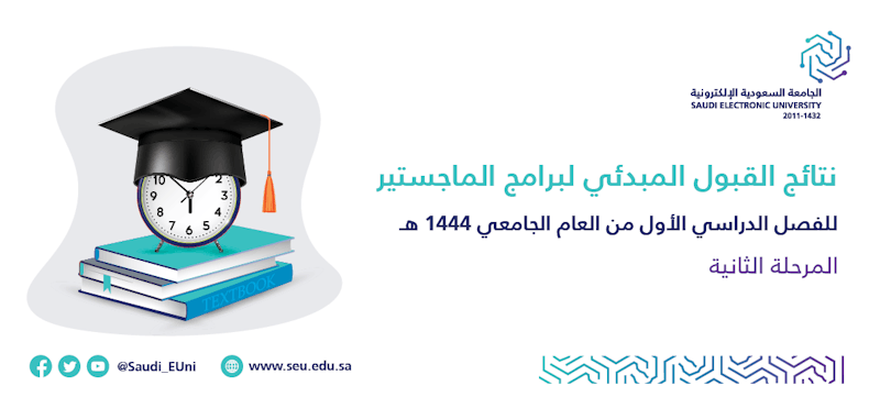 يسر عمادة الدراسات العليا أن تعلن عن نتائج القبول المبدئي لبرامج الماجستير للفصل الدراسي الأول من العام الجامعي 1444هـ (المرحلة الثانية).