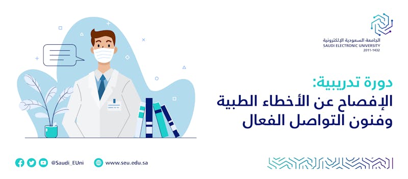يسر عمادة القبول وشؤون الطلاب دعوتكم لحضور دورة تدريبية بعنوان: الإفصاح عن الأخطاء الطبية وفنون التواصل الفعال.
