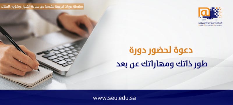 يسر عمادة القبول وشؤون الطلاب دعوتكم لحضور دورة تدريبية بعنوان: طور ذاتك ومهاراتك عن بعد.