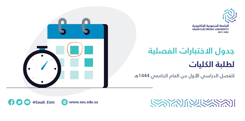 تعلن وكالة الجامعة للشؤون التعليمية عن جداول اختبارات منتصف الفصل الدراسي لطلبة الكليات للفصل الدراسي الأول للعام الجامعي 1444هـ