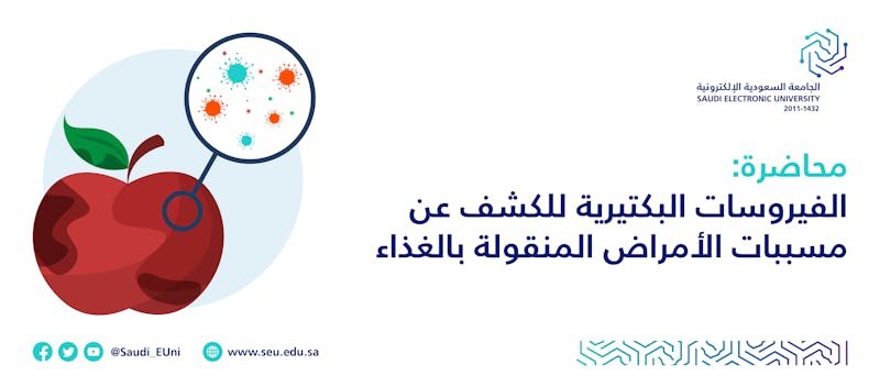 يسر كلية العلوم الصحية ممثلة بوحدة خدمة المجتمع قسم المعلوماتية الصحية دعوتكم لحضور محاضرة بعنوان: الفيروسات البكتيرية للكشف عن مسببات الأمراض المنقولة بالغذاء.