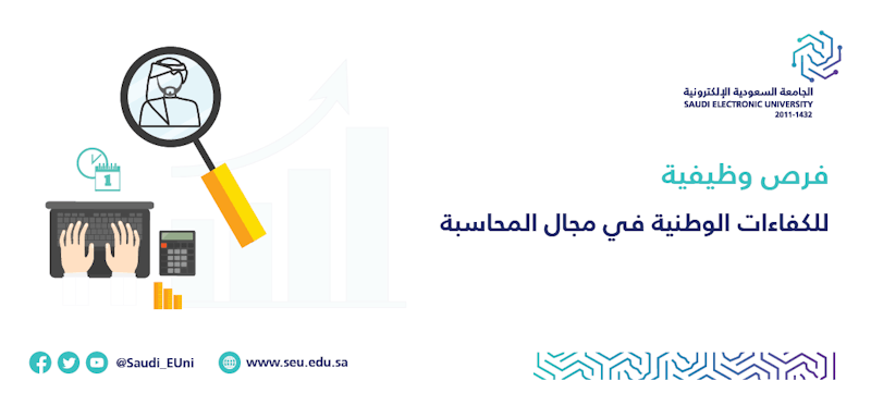 تعلن عمادة الموارد البشرية بالجامعة السعودية الإلكترونية عن إتاحة فرص وظيفية للكفاءات الوطنية بنظام العقود السنوية في مجال المحاسبة في مقرها الرئيسي بالرياض.
