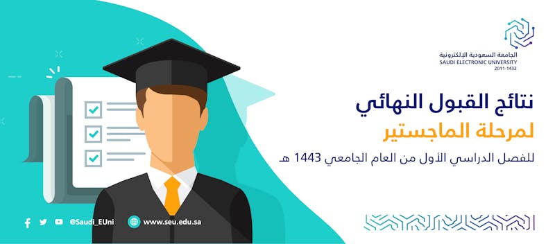 يسر عمادة الدراسات العليا أن تعلن عن نتائج القبول النهائي لمرحلة الماجستير للفصل الدراسي الأول من العام الجامعي 1443هـ.