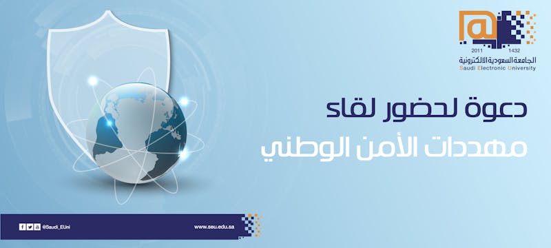 يسر فرع جدة بالجامعة السعودية الإلكترونية بالشراكة مع رئاسة أمن الدولة دعوتكم لحضور لقاء توعوي بعنوان: مهددات الأمن الوطني.