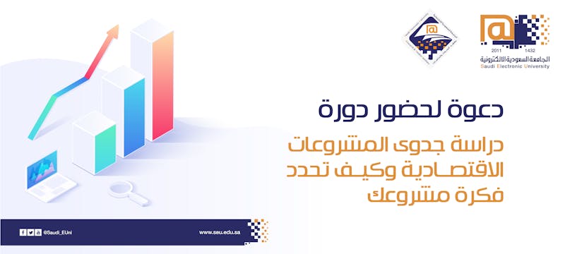يسر معهد البحوث والدراسات بالجامعة السعودية الإلكترونية دعوتكم للتسجيل في دورة: دراسة جدوى المشروعات الاقتصادية وكيف تحدد فكرة مشروعك.