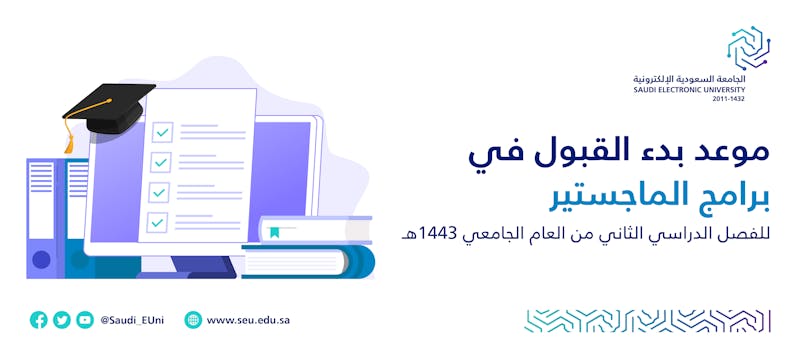 تعلن عمادة الدراسات العليا عن موعد بدء القبول في برامج الماجستير للفصل الدراسي الثاني من العام الجامعي 1443هـ