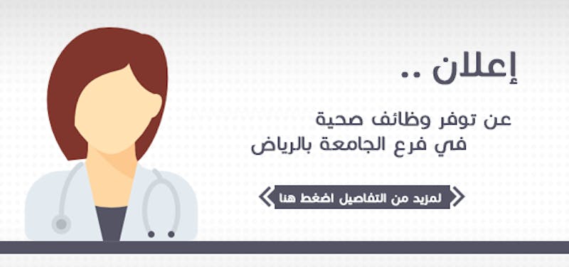 تعلن عمادة شؤون أعضاء هيئة التدريس والموظفين عن توفر وظائف صحية للسعوديين في فرع الجامعة بالرياض وذلك وفقاً للشروط التالية: