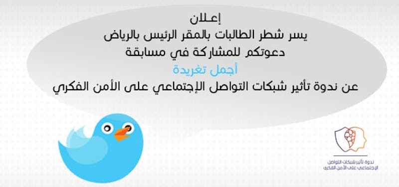 - كتابة تغريدة توضح ماهية الأمن الفكري و أثر وسائل التواصل الإجتماعي في محاربته و المحافظة على استقراره.