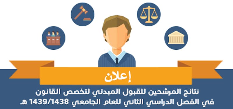 تهنئ الجامعة السعودية الإلكترونية المقبولين مبدئيًا في الدفعة الأولى لمرحلة البكالوريوس في تخصص القانون
