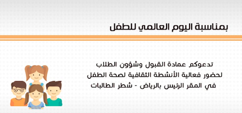 علماً بأنه سيصاحب المحاضرة ركن للتوعية حول (طفولة بلا إساءة) وذلك في بهو شطر الطالبات في المقر الرئيسي بالرياض
