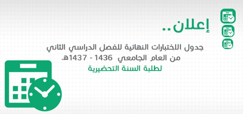 يسر عمادة السنة التحضيرية أن تعلن لطلبتها عن مواعد الاختبارات النهائية للفصل الدراسي الثاني وذلك حسب الجدول الآتي: