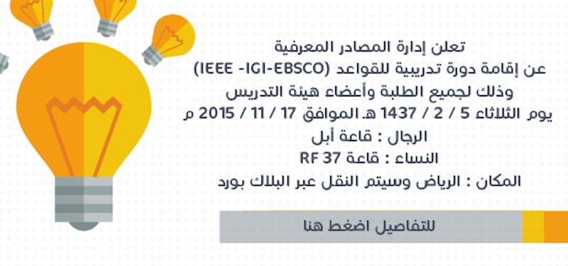 تعلن إدارة المصادر المعرفية عن إقامة دورة تدريبية للقواعد (IEEE -IGI-EBSCO)
