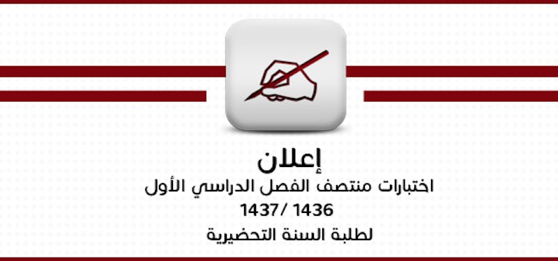 تعلن عمادة السنة التحضيرية لطلبتها، أن مواعيد اختبارات منتصف الفصل ستكون حسب الجدول الآتي :