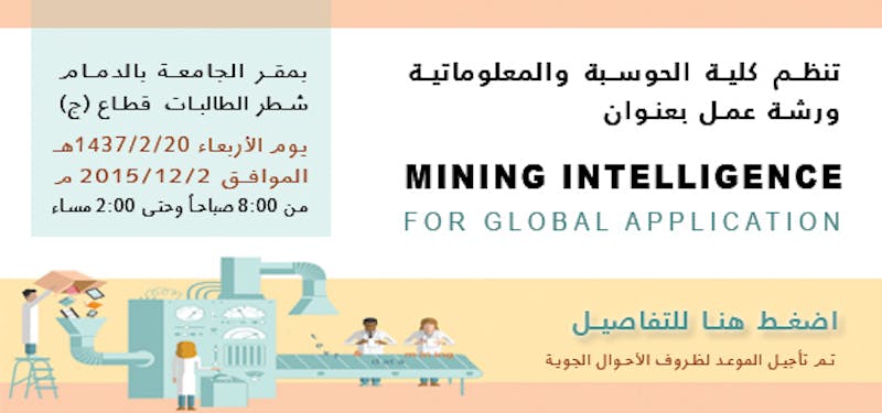 للتسجيل في الورشة اضغط هنا وهو متاح للحاضرات إلى فرع الجامعة بالدمام – شطر الطالبات فقط