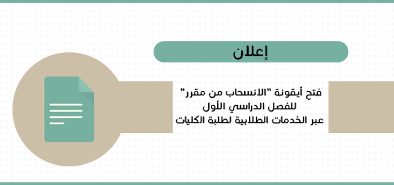 يبدأ تقديم طلب الانسحاب من مقرر للفصل الدراسي الأول يوم الأحد الموافق 15\01\1438 هـ عبر الخدمات الطلابية لطلبة الكليات فقط