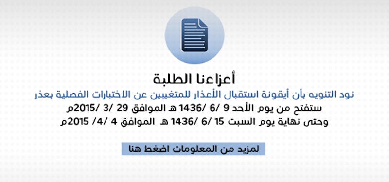 نود التنويه بأن أيقونة استقبال الأعذار للمتغيبين عن الاختبارات الفصلية بعذر
