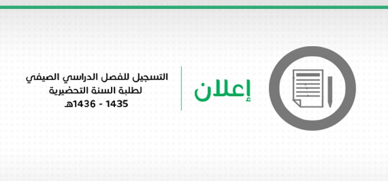 تعلن عمادة القبول وشؤون الطلاب للطلبة المكملين في مقرر أو مقررين من مقررات السنة التحضيرية عن بدء التسجيل للفصل الدراسي الصيفي