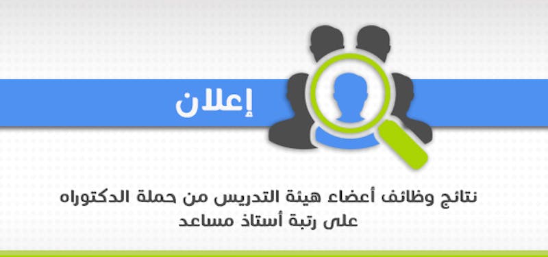 الاستفسار عن نتائج إعلان الوظائف الأكاديمية لأعضاء هيئة التدريس من حملة الدكتوراه على رتبة (أستاذ مساعد) في مختلف فروع الجامعة