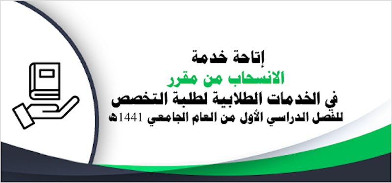 تعلن عمادة القبول وشؤون الطلاب عن بدء تقديم طلب الانسحاب من مقرر لطلبة الكليات فقط