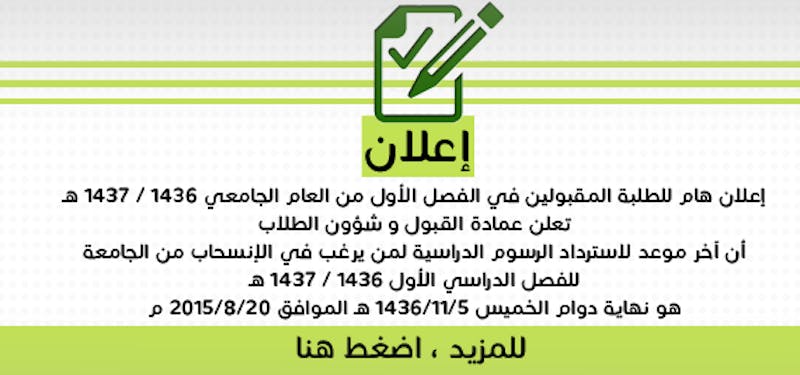 لمن يرغب في الإنسحاب من الجامعة للفصل الدراسي الأول 1436/ 1437 هـ و إسترداد الرسوم الدراسية