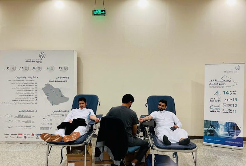 إيمانًا بدور الجامعة بالمسؤولية الاجتماعية وانطلاقًا من مبادئ التكافل وخدمة المجتمع وتعميق روح العطاء لخدمة الإنسانية، ومساهمة من الجامعة في تعزيز المسئولية تجاه المجتمع، وتفعيل دورها الإنساني في مد يد العون ومساعدة المرضى المحتاجين والمستشفيات التي تحتاج إلى الكثير من وحدات الدم المنقول، أقام قسم الأنشطة الطلابية بفرع الجامعة السعودية الإلكترونية في مدينة الدمام، بالتعاون مع بنك الدم التابع لمستشفى الملك فهد التخصصي بالدمام، حملة التبرع بالدم.