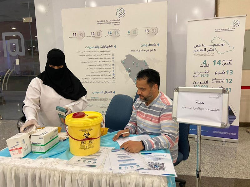 أطلقت وحدة الانشطة الطلابية بفرع الجامعة السعودية الإلكترونية في مدينة الدمام، بالتعاون مع مركز الطب الوقائي بصحة الشرقية، حملة توعوية بعنوان: (التطعيم ضد الإنفلونزا الموسمية)، وذلك للتوعية بمرض الإنفلونزا وأخذ لقاح التطعيم، حيث تم تقديم اللقاح لمنسوبي ومنسوبات فرع الجامعة بشطريه (طلاب - طالبات).
