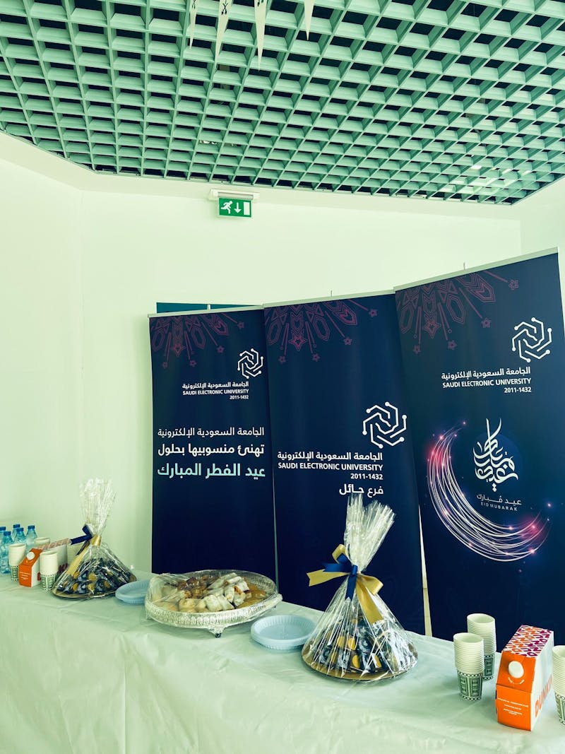 أقامت عمادة القبول وشؤون الطلاب بالجامعة السعودية الإلكترونية بالتعاون مع فرع حائل، حفل عيد الفطر المبارك بحضور منسوبي الفرع من موظفين وطلبه. حيث تشارك الجميع الفرحة بالعيد وتبادلوا التهاني والتبريكات، سائلين الله عز وجل أن يعيده على الجميع بالخير والبركات.