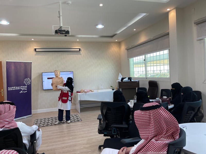 نظم مركز الجامعة السعودية الإلكترونية في حائل، بالتعاون مع هيئة الهلال الأحمر السعودي، دورة تدريبية بعنوان "الإسعافات الأولية"، وذلك بمناسبة اليوم العالمي للإسعافات الأولية.