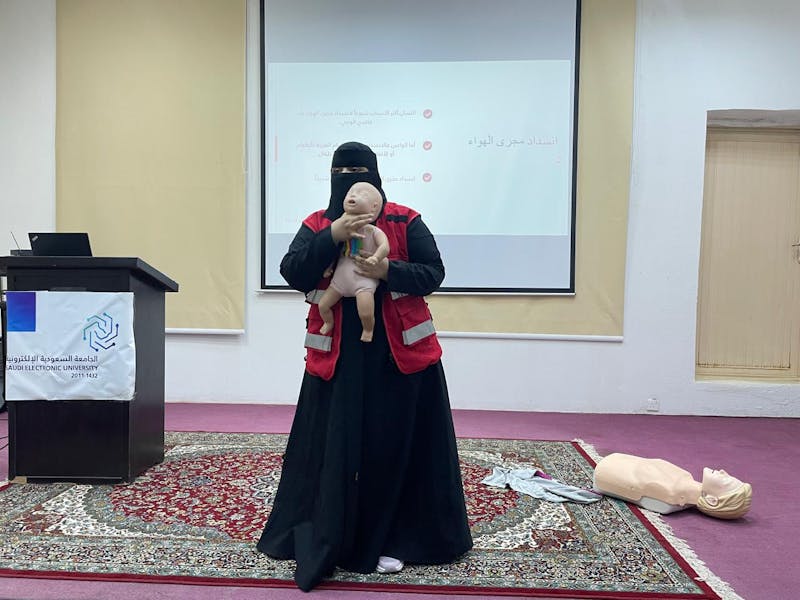 نظم مركز الجامعة السعودية الإلكترونية بجازان ورشة تدريبية بعنوان "الإسعافات الأولية"، استهدفت طالبات المركز بهدف نشر الوعي الصحي وتعريفهن بأساسيات التعامل مع الحالات الطارئة.
