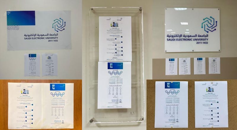 قام فرع الجامعة السعودية الإلكترونية و وبالتعاون مع وحدة الإرشاد النفسي بعرض توعوية كمنشورات جدارية على اللوحات الإعلانية و في أرجاء الفرع وذلك للتوعية أن فترة الاختبارات هي الفترة الحاسمة لكل طالب وطالبة. ويجب الاستعداد الجيد للاختبارات، والبعد عن التوتر والخوف والقلق، من خلال الاستعداد المبكر، وتقسيم المواد، وتنظيم جدول للاستذكار، تتخلله فترة راحة، حتى لا يصاب الطالب بالملل والتعب.