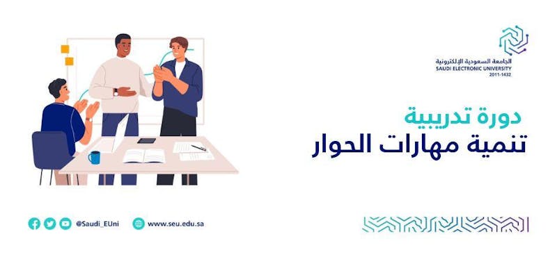 أقام فرع الجامعة السعودية الإلكترونية بجازان دورة تدريبية افتراضية بعنوان: (تنمية مهارات الحوار)، واستهدفت كافة طلاب وطالبات الجامعة في مختلف الفروع.
