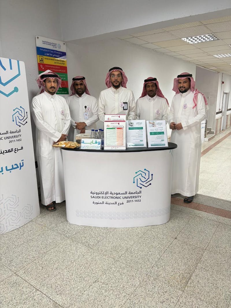 أقام مركز الجامعة السعودية الإلكترونية بالمدينة المنورة، بالتعاون مع وزارة الصحة ممثلة في برنامج «وقاية»، ركنًا توعويًا عن ارتفاع ضغط الدم والأمراض القلبية، استهدف طلبة ومنسوبي المركز، وذلك ضمن الجهود المشتركة لتعزيز الوعي الصحي ونشر الثقافة الوقائية داخل المجتمع الجامعي.