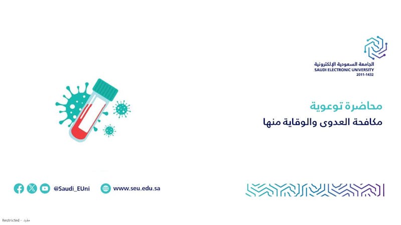 تأتي هذه المحاضرة ضمن جهود الجامعة السعودية الإلكترونية في دعم صحة وسلامة المجتمع الجامعي، وتأكيدًا على التزامها في نشر وتعزيز الوعي الصحي بين منسوبيها في كافة فروعها.