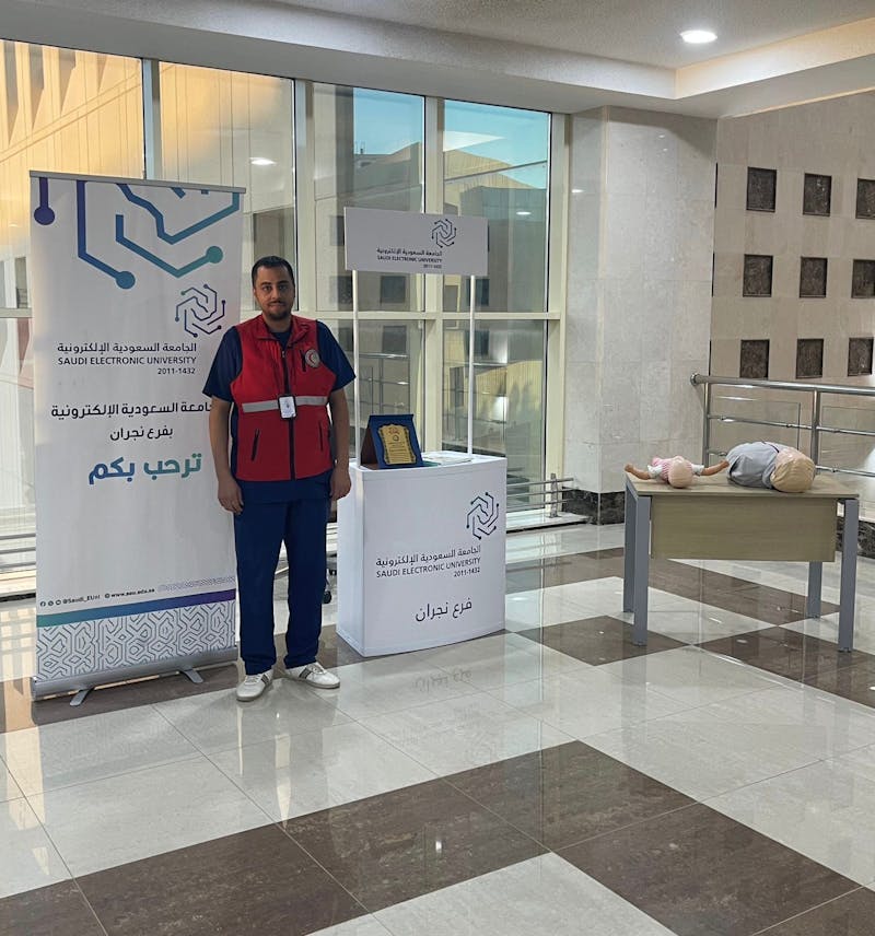 أقام فرع الجامعة السعودية الإلكترونية بمنطقة نجران، ممثلًا بعمادة شؤون الطلاب، بالتعاون مع هيئة الهلال الأحمر السعودي بالمنطقة، ركنًا توعويًا تثقيفيًا للتوعية بالإسعافات الأولية، تخلله شرحًا عمليًا بكيفية التعامل مع الإصابات والحالات الطارئة.