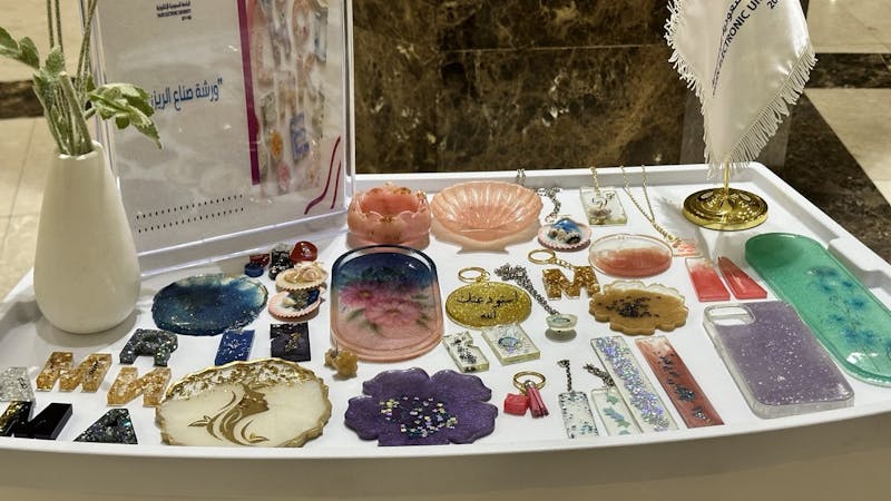 وتضمّنت الورشة تطبيقات عملية شملت مزج وصب الريزن وتصميم نماذج فنية باستخدام خامات وألوان متنوعة، في تجربة تفاعلية عزّزت لدى الطالبات مهارات الإبداع والدقة والابتكار.