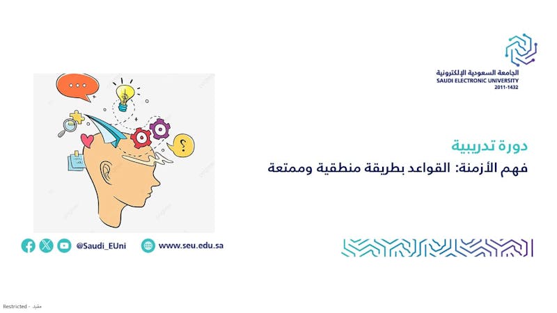 نظم مركز الجامعة السعودية الإلكترونية بنجران، ممثلاً بوحدة الأنشطة الطلابية في عمادة شؤون الطلاب، دورة تدريبية في اللغة الإنجليزية بعنوان "فهم قواعد الأزمنة بطريقة منطقية وممتعة"، قدّمها الأستاذ عبد العزيز اليامي عبر منصة البلاك بورد، واستهدفت طلبة الجامعة في كافة مراكزها التعليمية.