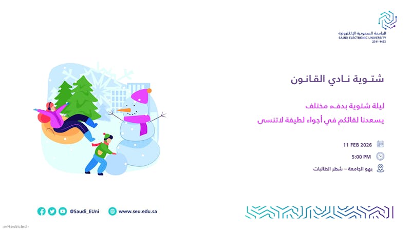 يسر نادي القانون في مركز الجامعة السعودية الإلكترونية بجدة دعوتكم لحضور فعالية بعنوان: شتوية نادي القانون