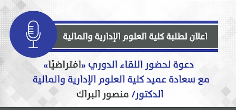 ندعوكم لحضور اللقاء الدوري "افتراضيًا" مع سعادة عميد كلية العلوم الإدارية والمالية الدكتور / منصور البراك