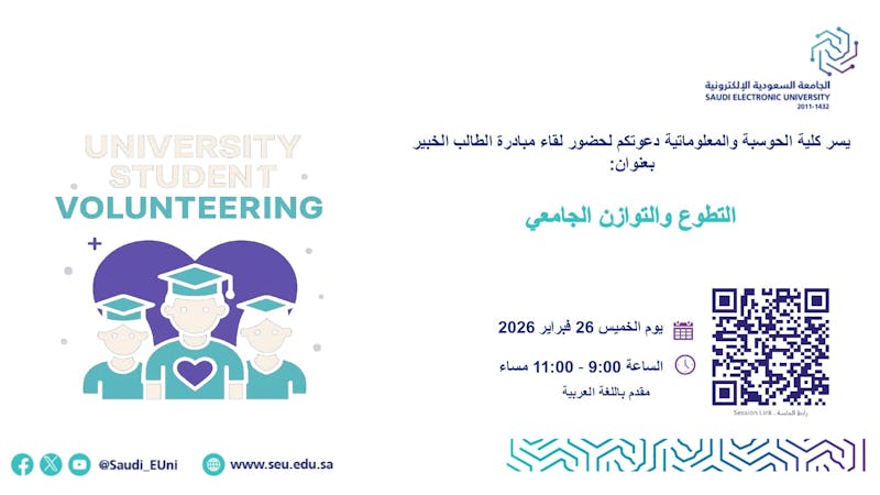 يسر كلية الحوسبة والمعلوماتية دعوتكم لحضور لقاء مبادرة الطالب الخبير بعنوان: