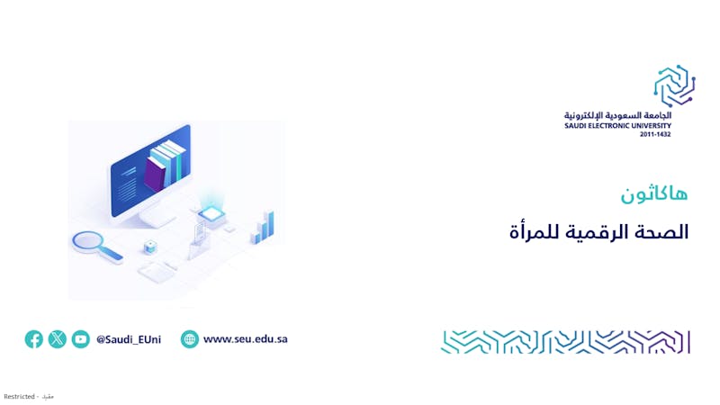 يسر كلية الحوسبة والمعلوماتية دعوتكم للمشاركة في هاكاثون الصحة الرقمية للمرأة وهو مسابقة تقنية مبتكرة تنظمها جامعة الجوف بهدف تعزيز مفهوم الصحة الرقمية للمرأة في المملكة العربية السعودية. يستهدف هذا الهاكاثون العنصر النسائي من المبرمجات، مطورات النظم، ورائدات الأعمال المهتمات بالابتكار الرقمي.
