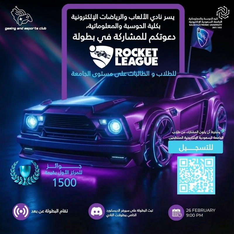 يسر نادي الألعاب والرياضات الإلكترونية بكلية الحوسبة والمعلوماتية دعوتكم للمشاركة في بطولة