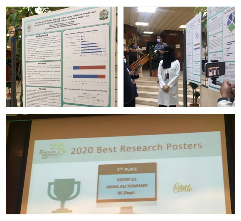 حصلت الأستاذة عائشة علي طوهري الخريجة من برنامج الماجستير في إدارة الرعاية الصحية بالجامعة السعودية الإلكترونية والمعيدة بكلية الأمير سلطان العسكرية للعلوم الصحية، على المركز الثاني كأفضل بحث من الملصقات البحثية المشاركة والذي سلمته كمشروع تخرج في برنامج الماجستير، وذلك خلال فعالية يوم البحث العلمي الثالث لأعضاء هيئة التدريس لعام 2020م والمقام بتنظيم كلية الأمير سلطان العسكرية في يوم الأربعاء بتاريخ ١٧ ربيع آخر ١٤٤٢هـ الموافق ٢ ديسمبر ٢٠٢٠م.